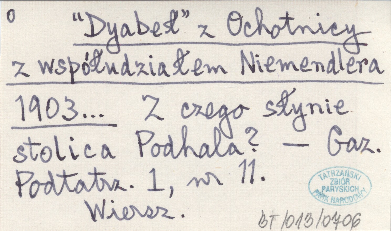 "Dyabeł" z Ochotnicy z współudziałem Niemendlera 1903... Z czego słynie stolica Podhala?