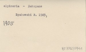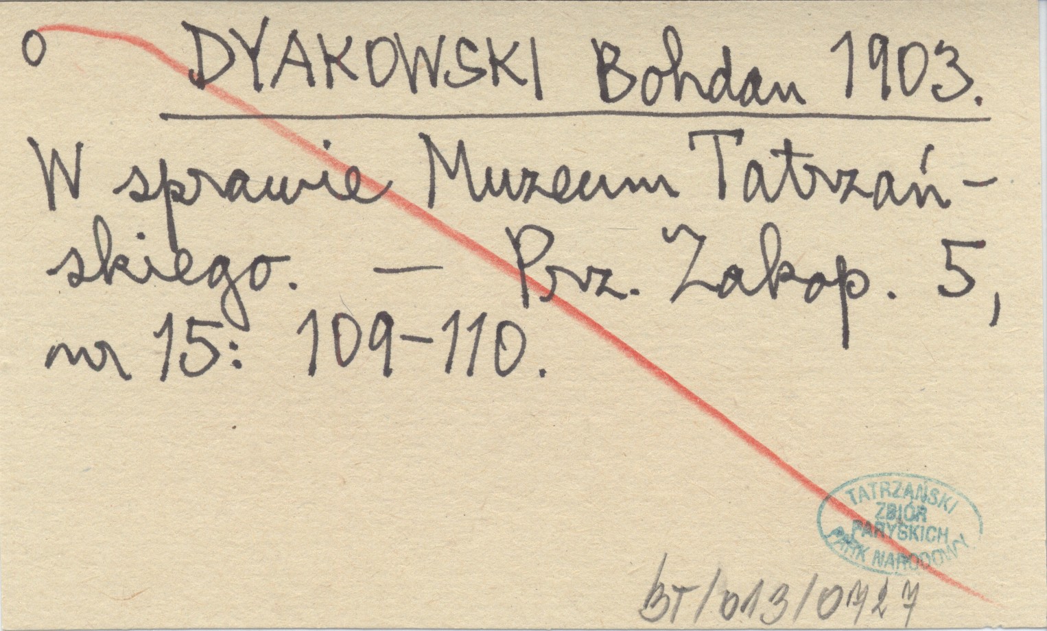 DYAKOWSKI Bohdan 1903 W sprawie Muzeum Tatrzańskiego.