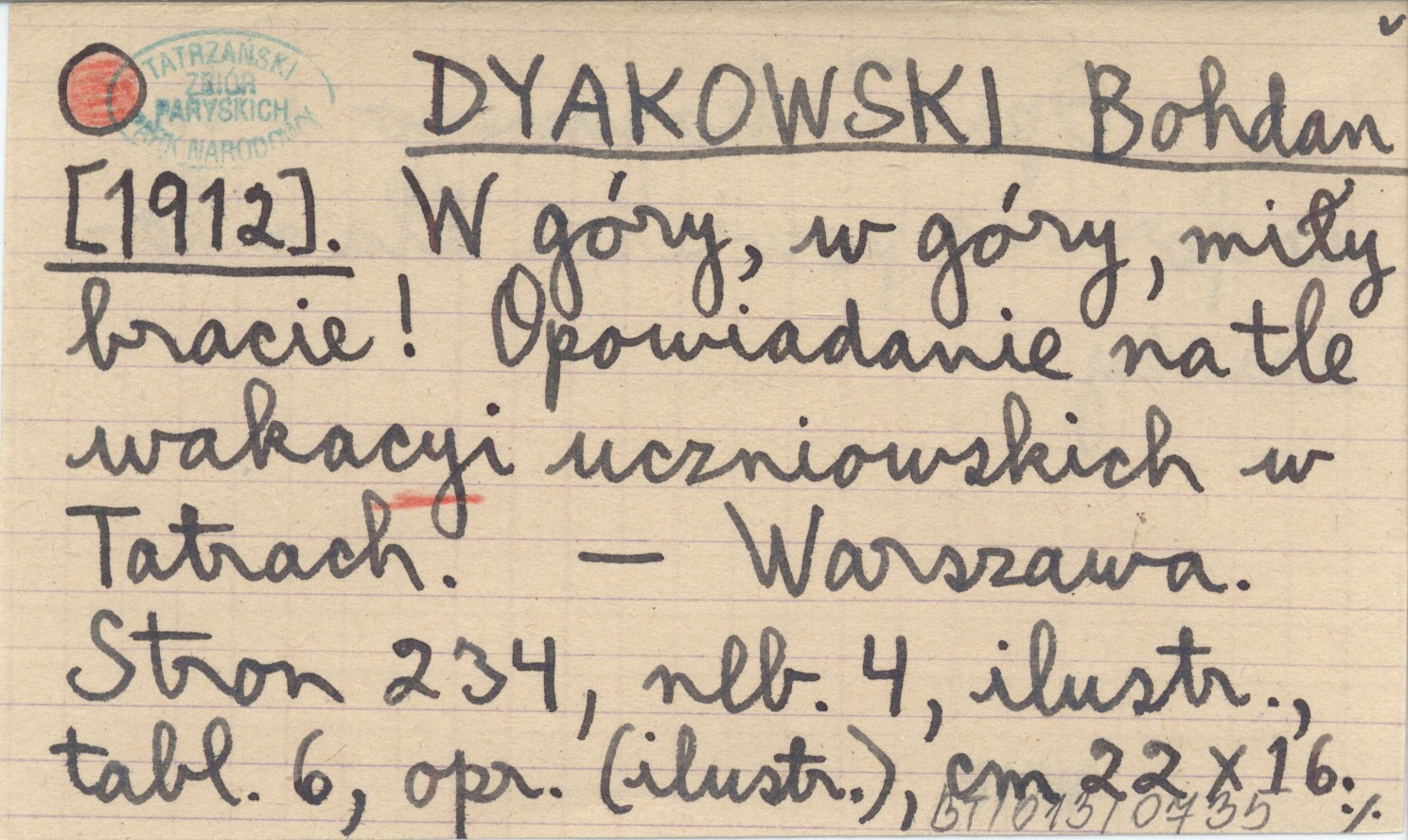 DYAKOWSKI Bohdan [1912] W góry, w góry, miły bracie! Opowiadanie na tle wakacyi uczniowskich w Tatrach.