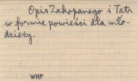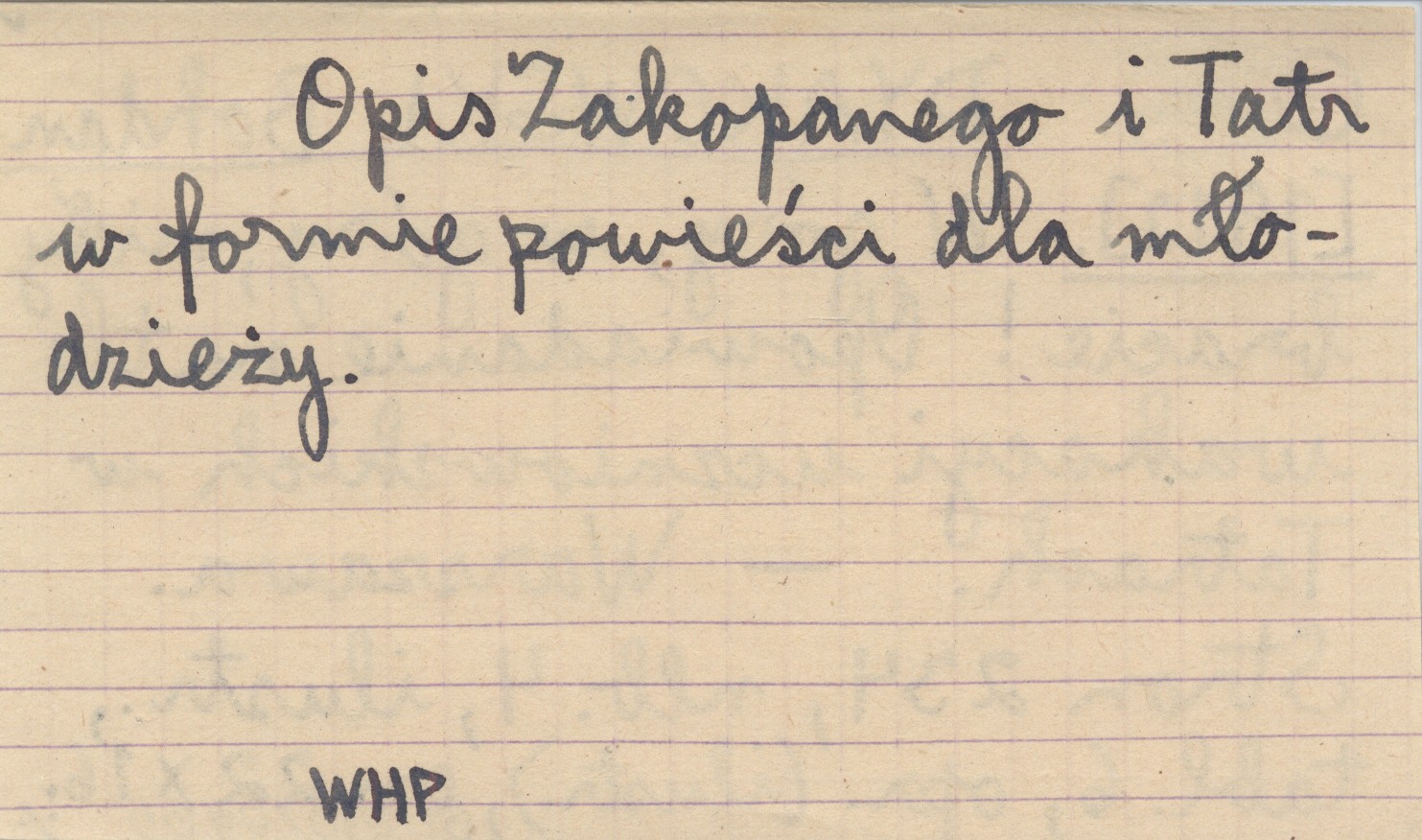 Warszawa , 234, [4] s., il., 6 k., opr. (il.), 22x16 cm. Opis Zakopanego i Tatr w formie powieści dla młodzieży.