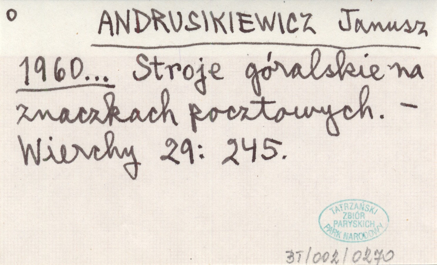 ANDRUSIKIEWICZ Janusz 1960... Stroje góralskie na znaczkach pocztowych.