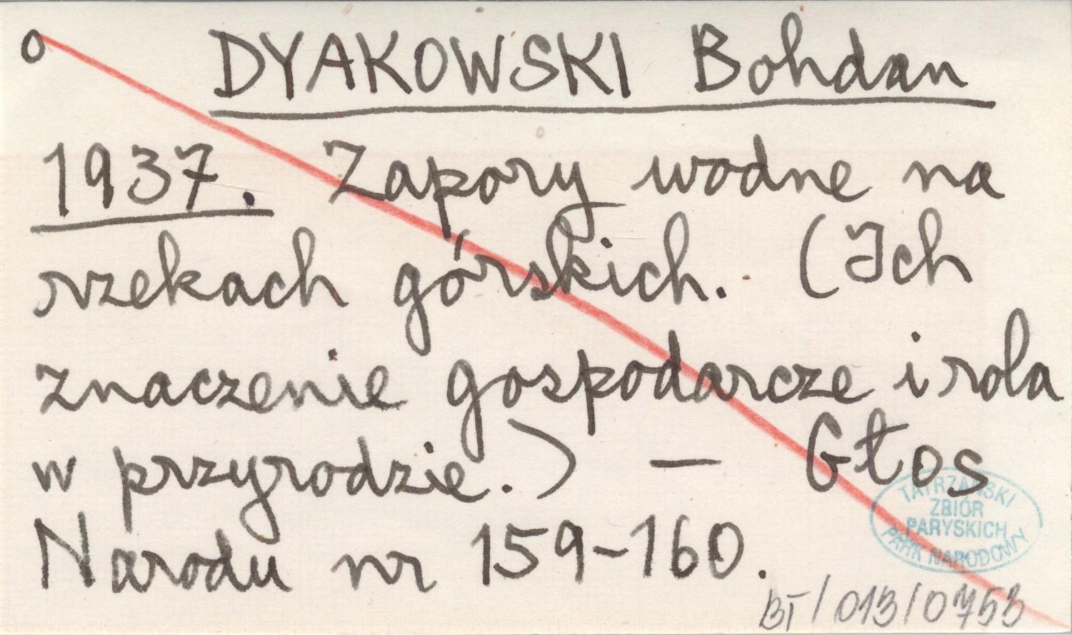 DYAKOWSKI Bohdan 1937 Zapory wodne na rzekach górskich. (Ich znaczenie gospodarcze i rola w przyrodzie).