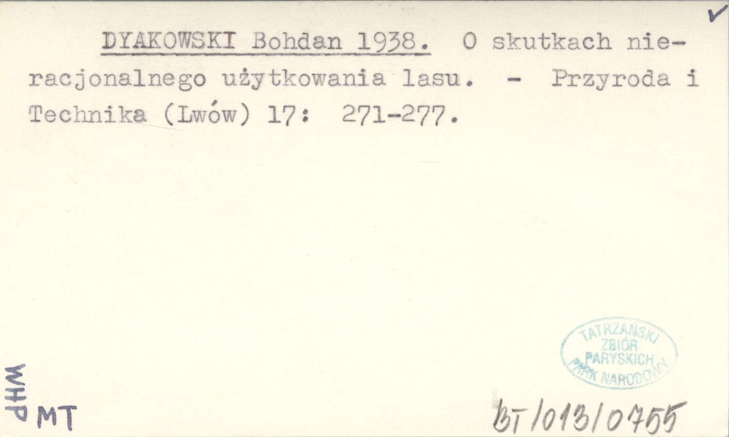 DYAKOWSKI Bohdan 1938 O skutkach nieracjonalnego użytkowania lasu.