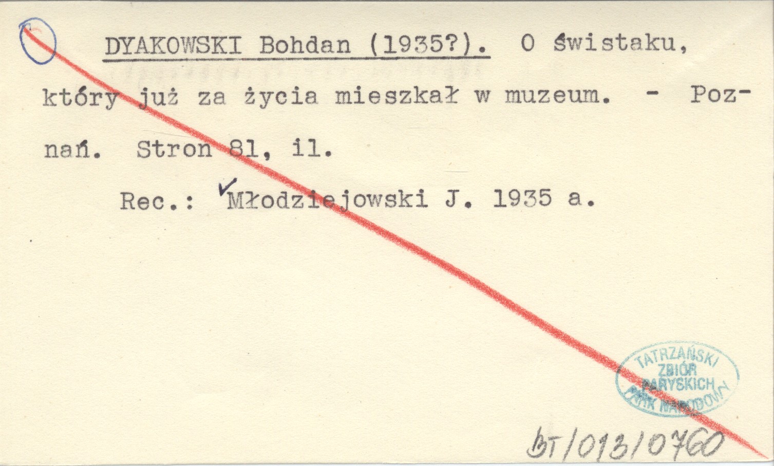 DYAKOWSKI Bohdan 1935? O świstaku, który już za życia mieszkał w muzeum.