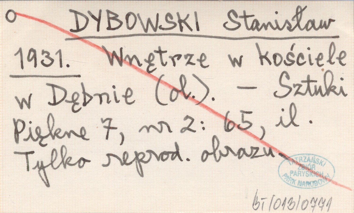 DYBOWSKI Stanisław 1931 Wnętrze w kościele w Dębnie (ol.)