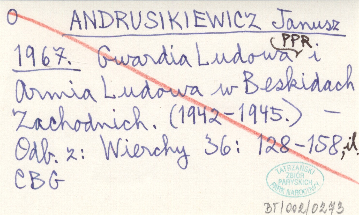 ANDRUSIKIEWICZ Janusz 1967 Gwardia Ludowa PPR i Armia Ludowa w Beskidach Zachodnich. (1942-1945).