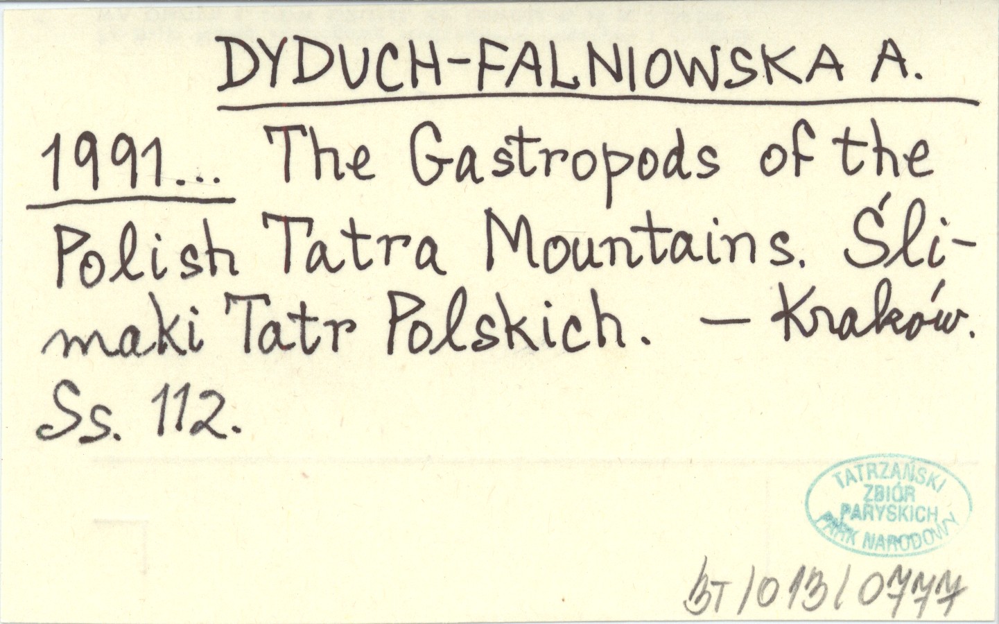 DYDUCH-FALNIOWSKA A. 1991... The Gastropods of the Polish Tatra Mountains. Ślimaki Tatr Polskich.
