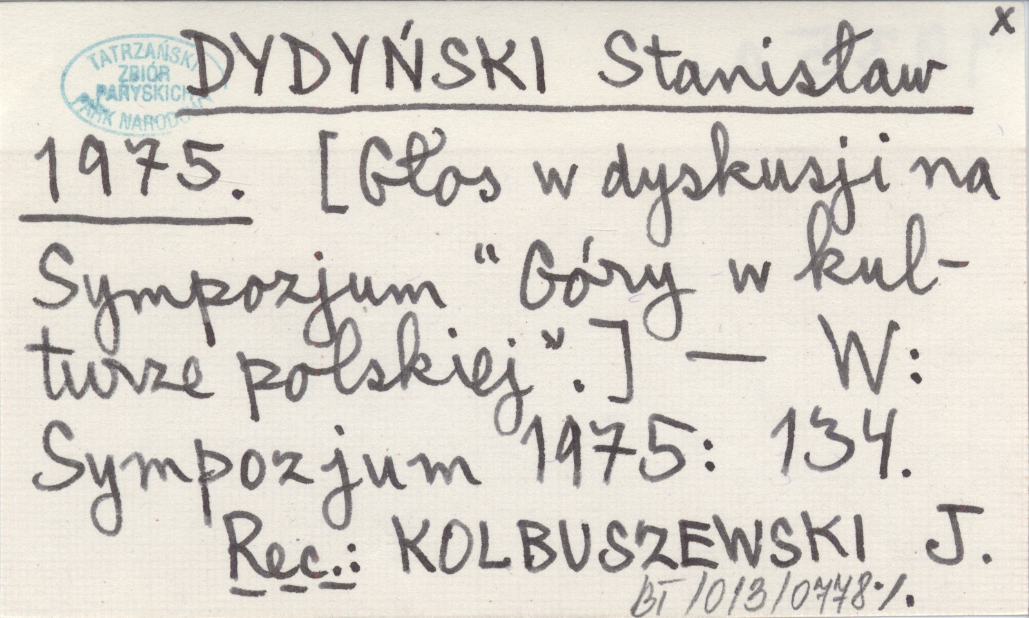 DYDYŃSKI Stanisław 1975 [Głos w dyskusji na Sympozjum "Góry w kulturze polskiej".]