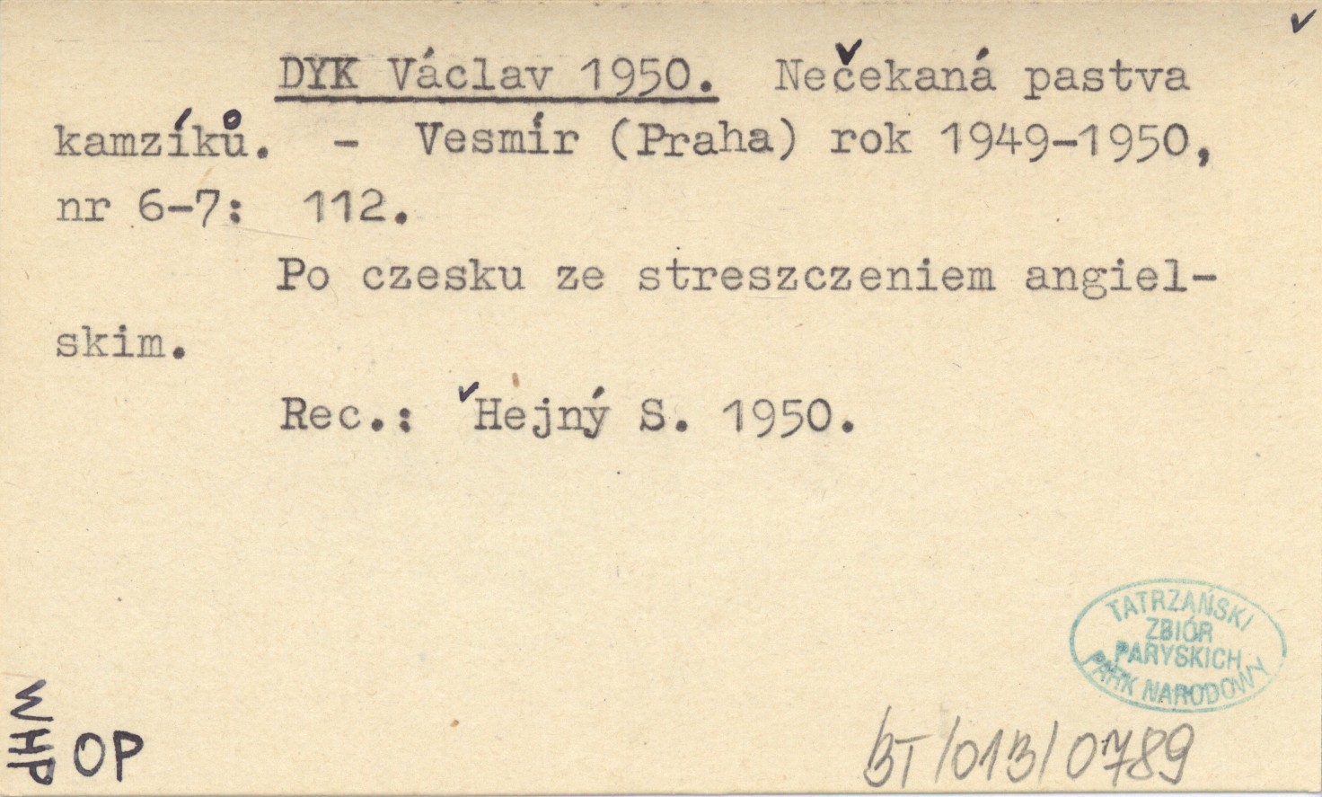 Vesmír (Praha) , R. 1949-1950, nr 6-7: 112. Po czesku ze streszczeniem angielskim. REC: HEJNÝ S. 1950