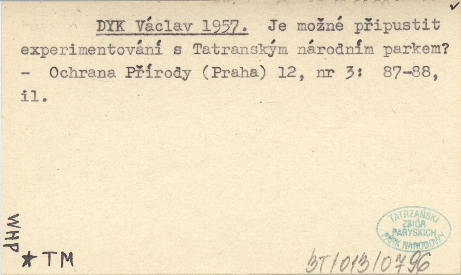 DYK Václav 1957 Je moľné připustit experimentování s Tatranským národním parkem?
