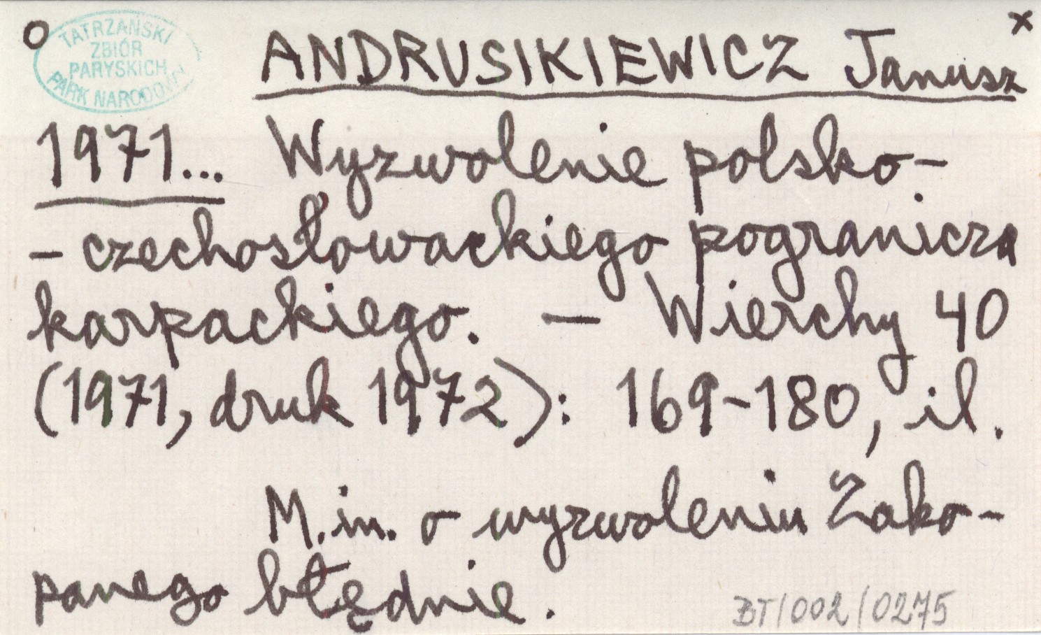 ANDRUSIKIEWICZ Janusz 1971... Wyzwolenie polsko-czechosłowackiego pogranicza karpackiego.