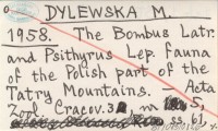 DYLEWSKA M. 1958 The Bombus Latr. and Psithyrus Lep. fauna of the Polish part of the Tatry Mountains.