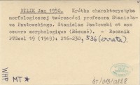 DYLIK Jan 1950 Krótka charakterystyka morfologicznej twórczości profesora Stanisława Pawłowskiego. Stanislas Pawłowski et son oeuvre morphologique (Résumé).