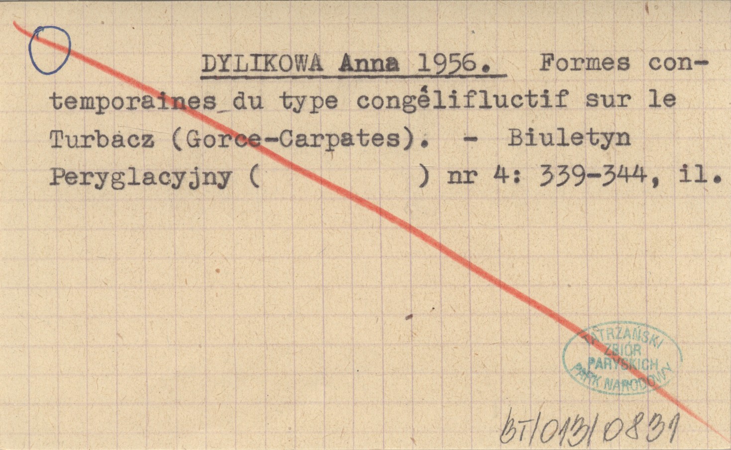 DYLIKOWA Anna 1956 Formes contemporaines du type congélifluctif sur le Turbacz (Gorce - Carpates).