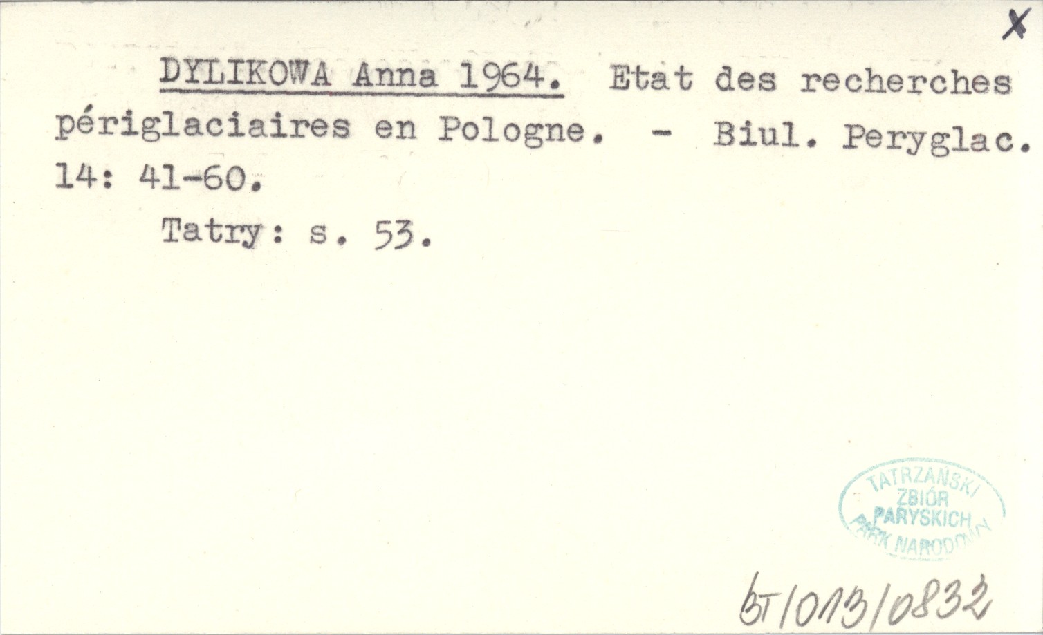 DYLIKOWA Anna 1964 Etat des recherches périglaciaires en Pologne.