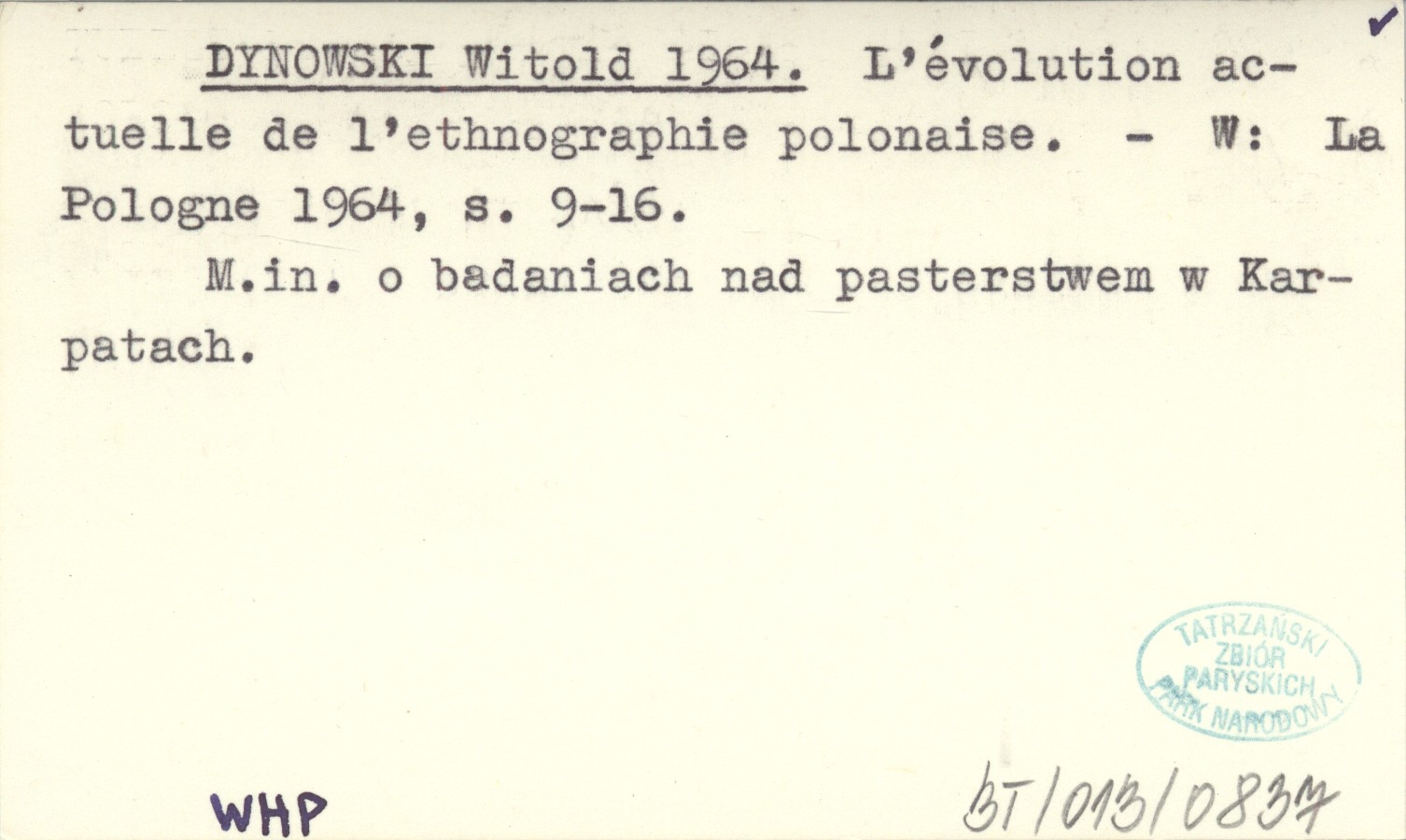 La Pologne , S. 9-16. M. in. o badaniach nad pasterstwem w Karpatach.