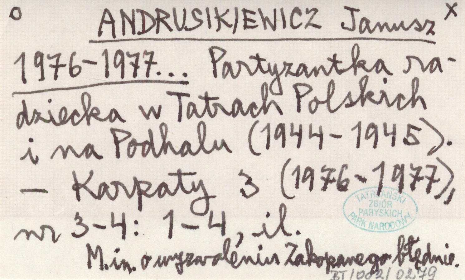ANDRUSIKIEWICZ Janusz 1976-1977 Partyzantka radziecka w Tatrach Polskich i na Podhalu (1944-1945).