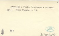 Dyskusja o Parku Narodowym w Tatrach. 1934