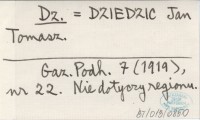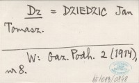 Dz. DZIEDZIC Jan Tomasz Gazeta Podhalańska 7 (1919), nr 22. Nie dotyczy regionu.