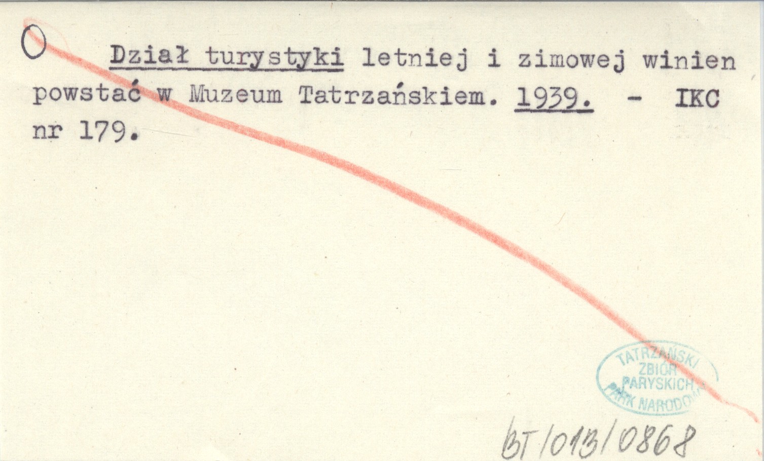 Dział turystyki letniej i zimowej winien powstać w Muzeum Tatrzańskiem. 1939
