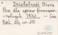 Działalność Biura Pow. dla spraw finansowo-rolnych. 1932...