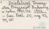 Działalność Towarzystwa Przyjaciół Bukowiny w roku 1931/32. 1932...