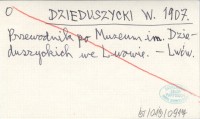 DZIEDUSZYCKI W. 1907 Przewodnik po Muzeum im. Dzieduszyckich we Lwowie.