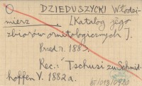 DZIEDUSZYCKI Włodzimierz przed 1883 [Katalog jego zbiorów ornitologicznych.]