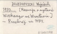 DZIEDUSZYCKI Wojciech 1973... [Recenzja o wystawie Witkacego we Wrocławiu.]
