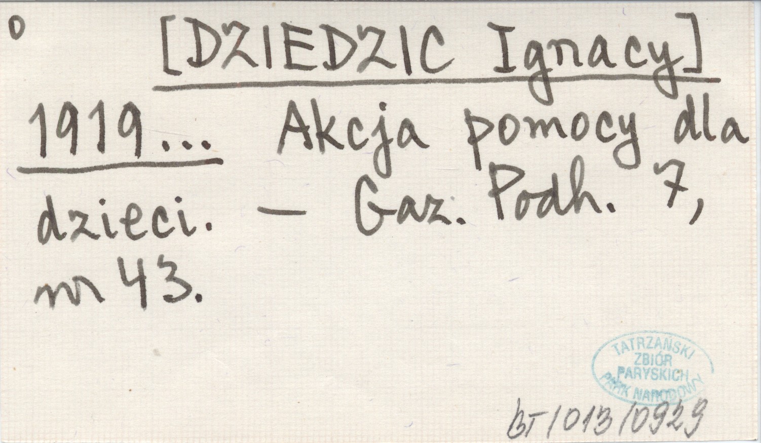 [DZIEDZIC Ignacy] 1919... Akcja pomocy dla dzieci.
