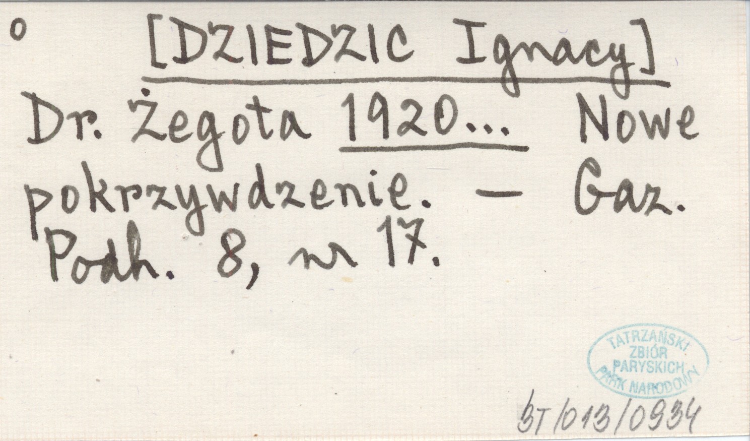Dr. Żegota [DZIEDZIC Ignacy] 1920... Nowe pokrzywdzenie.