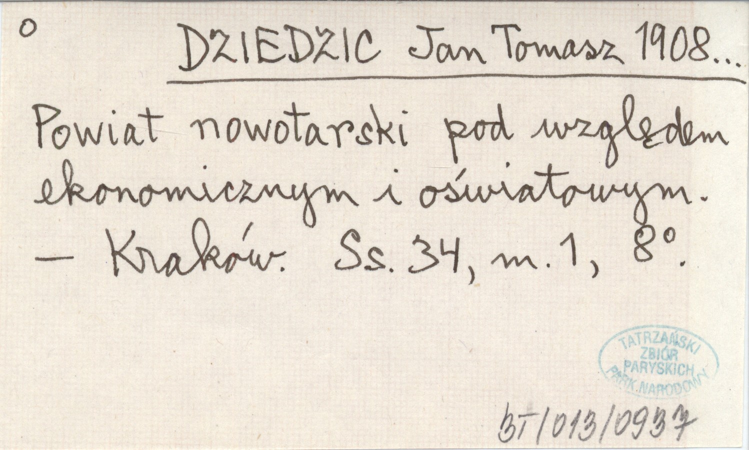 DZIEDZIC Jan Tomasz 1908... Powiat nowotarski pod względem ekonomicznym i oświatowym.