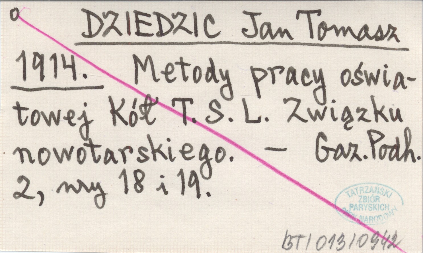 DZIEDZIC Jan Tomasz 1914 Metody pracy oświatowej Kół T.S.L. Związku nowotarskiego.