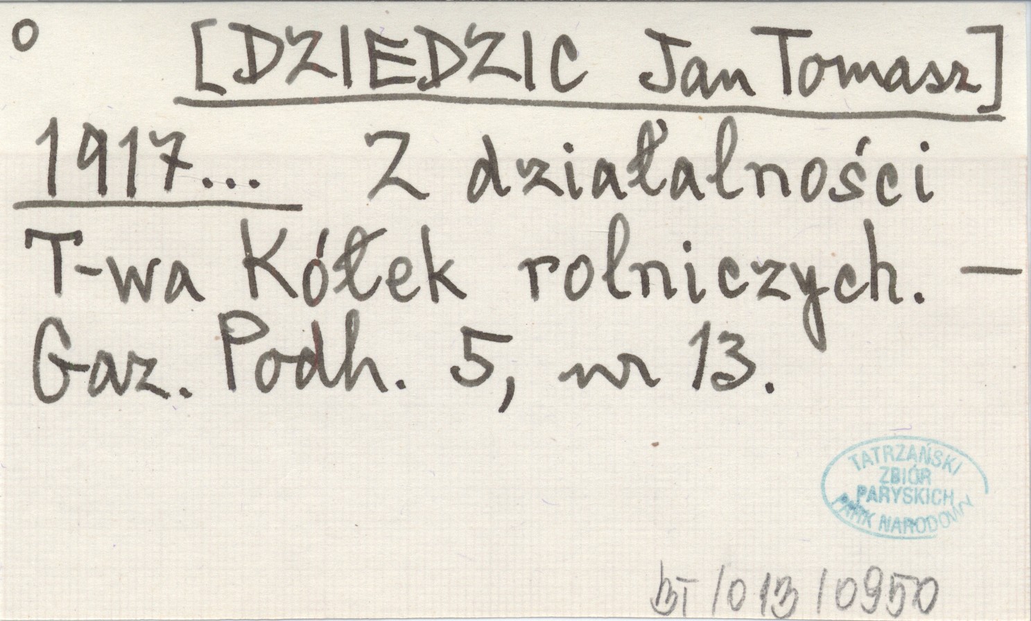 [DZIEDZIC Jan Tomasz] 1917... Z działalności T-wa Kółek rolniczych.