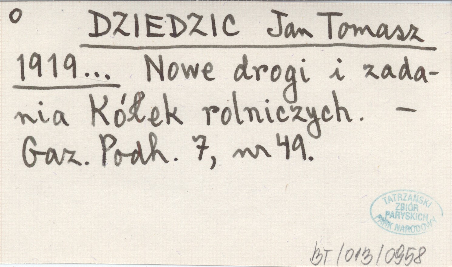 DZIEDZIC Jan Tomasz 1919... Nowe drogi i zadania Kółek rolniczych.