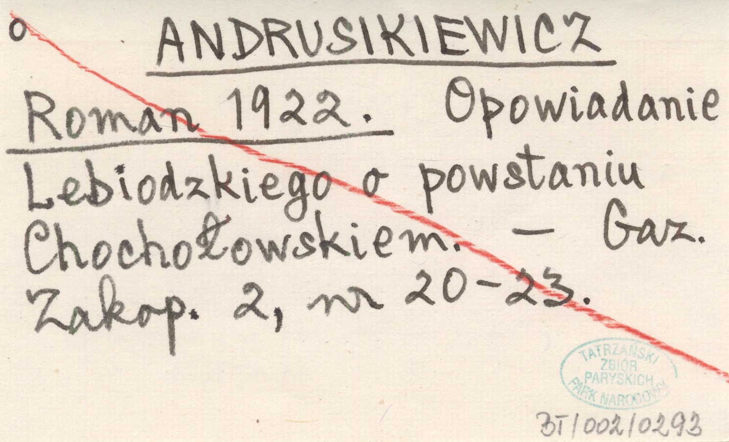 ANDRUSIKIEWICZ Roman 1922 Opowiadanie Lebiodzkiego o powstaniu Chochołowskiem.