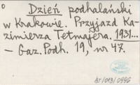Dzień podhalański w Krakowie. Twórca "Skalnego Podhala" przybędzie na uroczystości. 1931