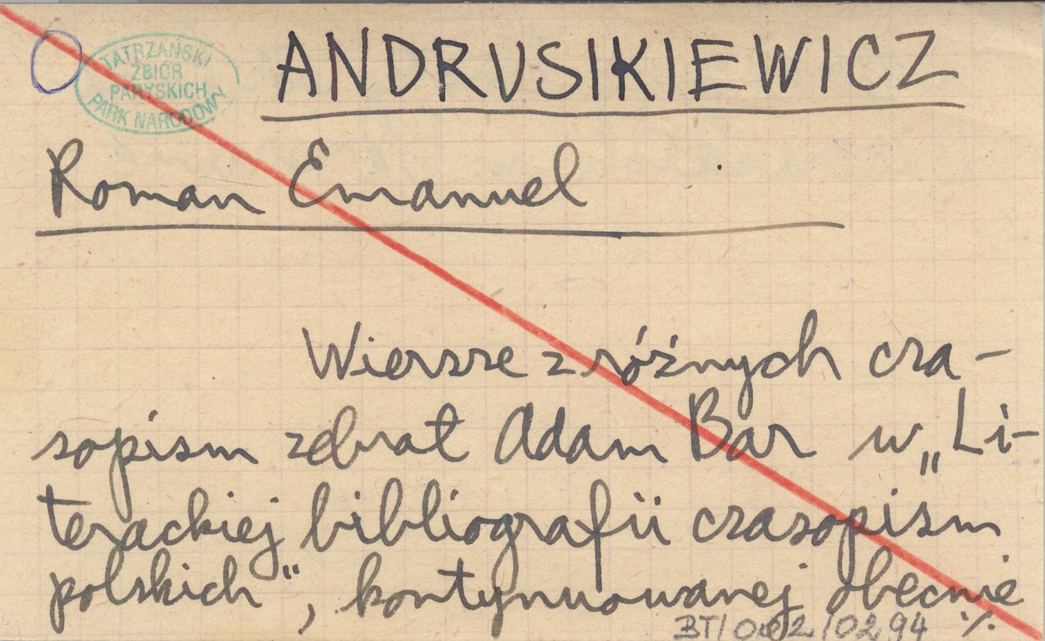 Wiersze z różnych czasopism zebrał Adam Bar w "Literackiej bibliografii czasopism polskich", kontynuowanej obecnie (r. 1955) przez Instytut Badań Literackich w Warszawie.