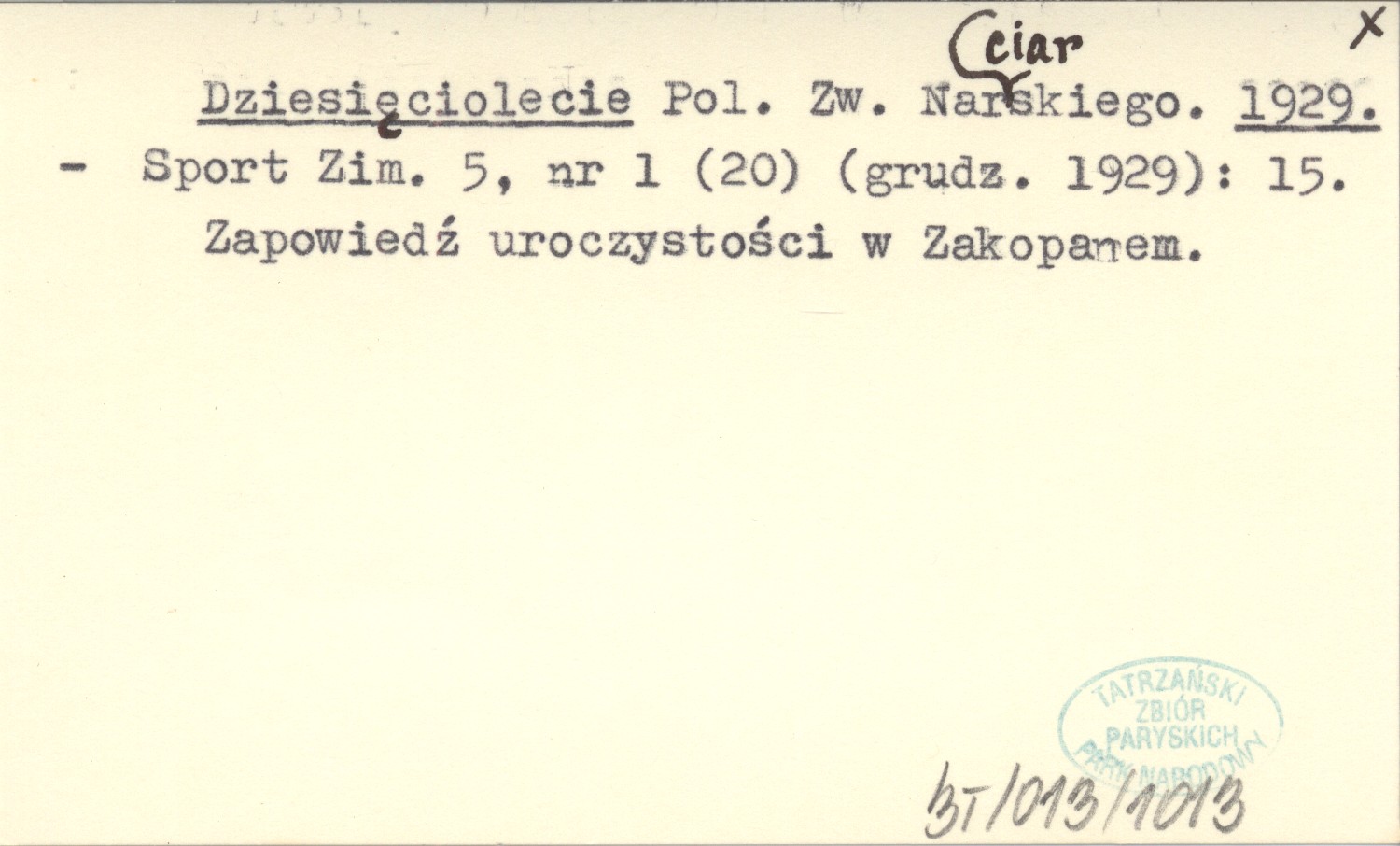 Sport Zimowy, 5, nr 1 (20) (grudz. 1929): 15. Zapowiedź uroczystości w Zakopanem.