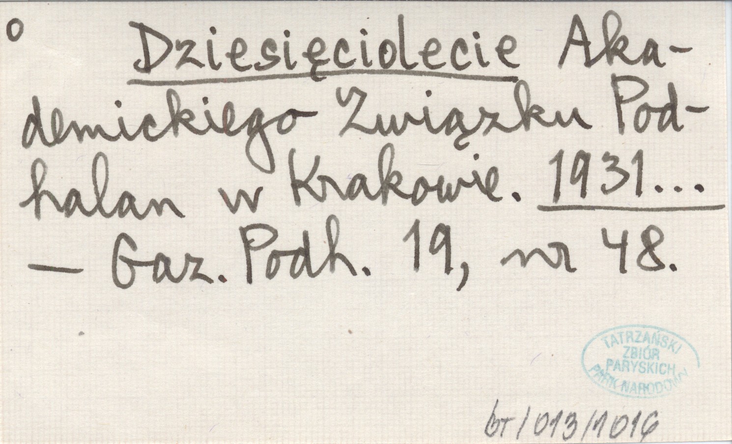 Projekt Digitalizacja fiszek z Bibliografią Tatr i Podtatrza Witolda Henryka Paryskiego jest finansowany ze środków Ministra Kultury i Dziedzictwa Narodowego oraz Tatrzańskiego Parku Narodowego.
