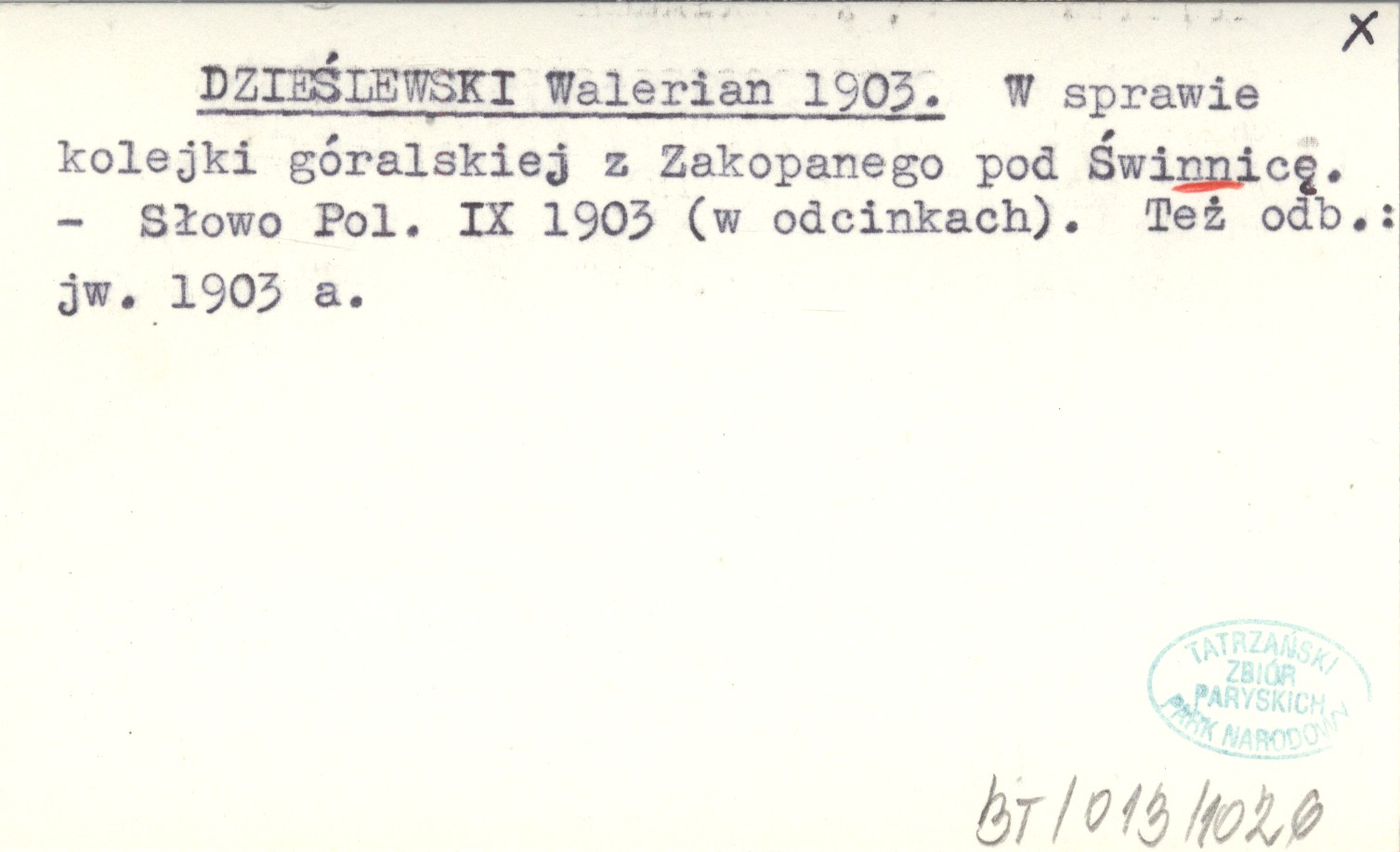 DZIEŚLEWSKI Walerian 1903 W sprawie kolejki góralskiej z Zakopanego pod Świnnicę.