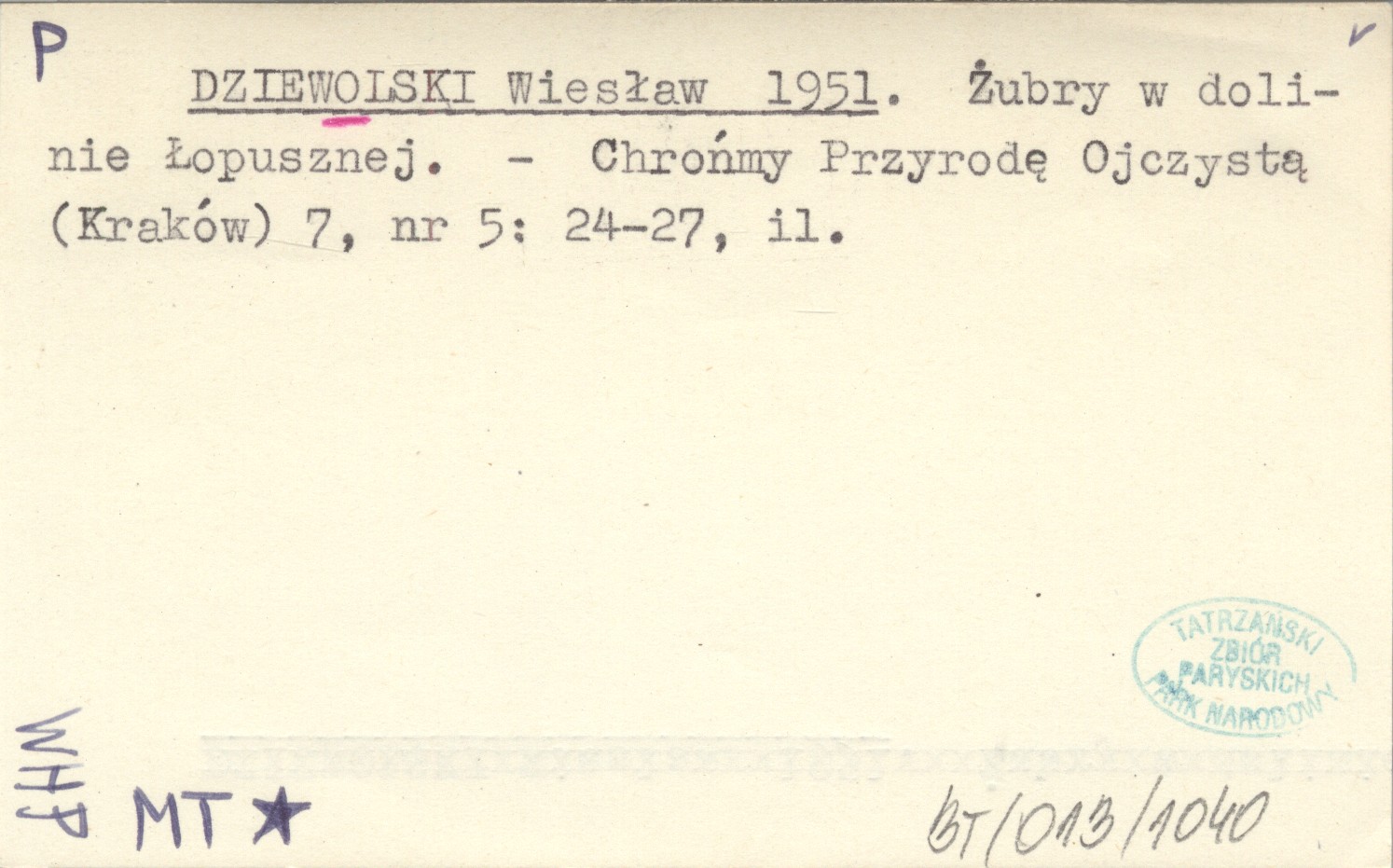 DZIEWOLSKI Wiesław 1951 Żubry w dolinie Łopusznej.
