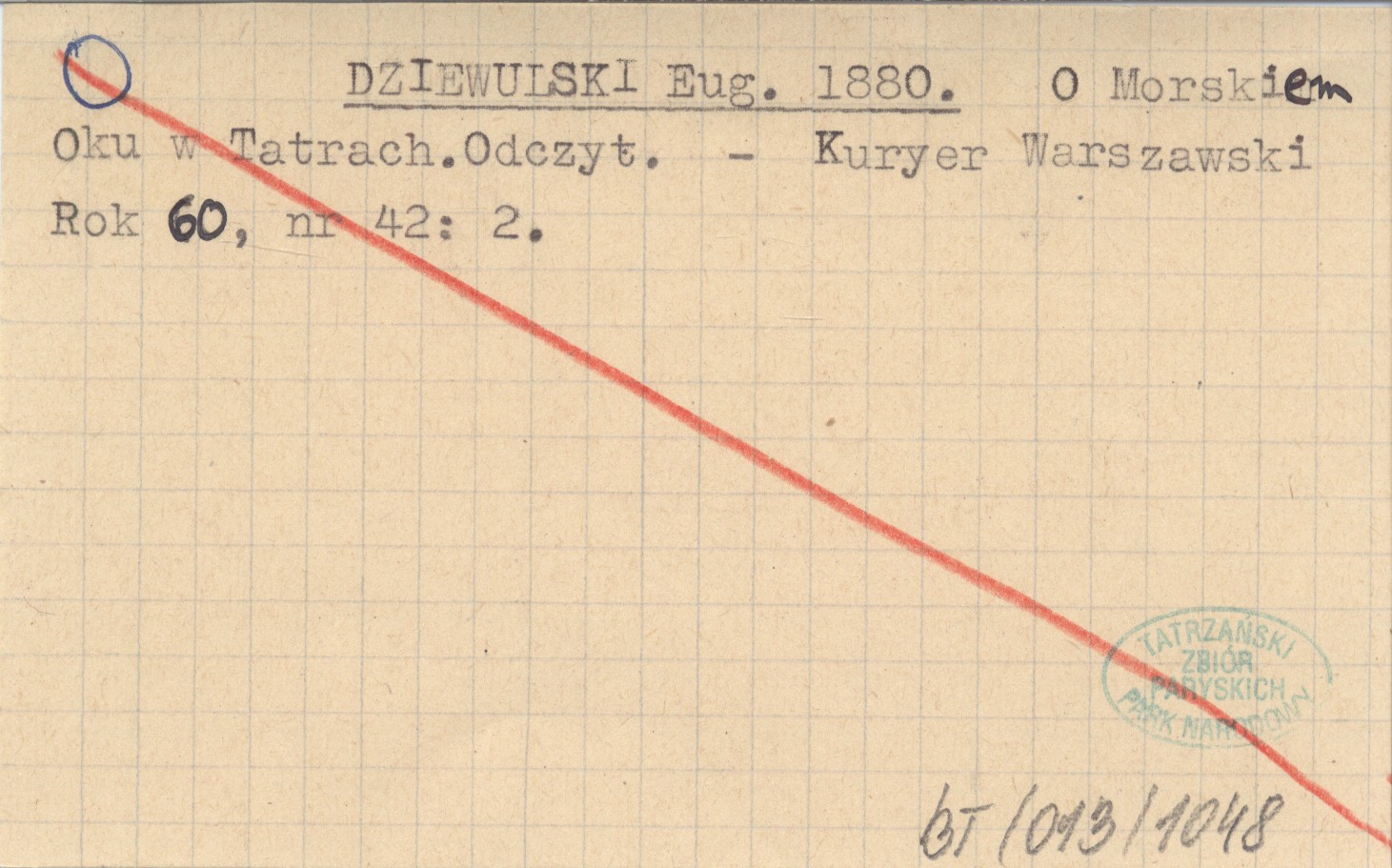 DZIEWULSKI Eugeniusz 1880 O Morskiem Oku w Tatrach. Odczyt.