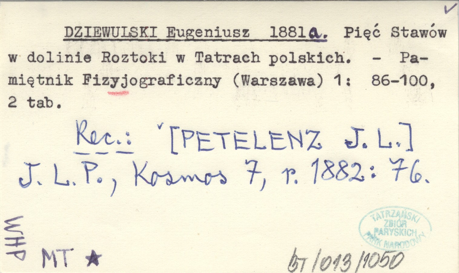 Pamiętnik Fizyograficzny (Warszawa) , 1: 86-100, 2 k. REC: [PETELENZ J. L.] J. L. P., Kosmos 7, r. 1882: 76.