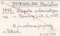 DZIEWULSKI Stanisław 1947 Ślepota urbanistyczna.