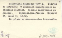 DZIEWULSKI Władysław 1917 a Dodatek do artykułu: O pomiarach magnetycznych na Ziemiach Polskich. Mesures magnetiquea en Pologne.