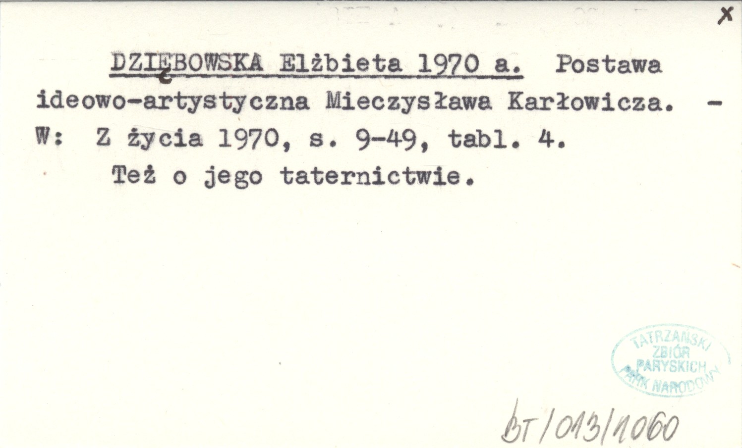 DZIĘBOWSKA Elżbieta 1970 a Postawa ideowo-artystyczna Mieczysława Karłowicza.