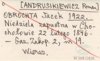 OBROCHTA Jacek [ANDRUSIKIEWICZ Roman] 1922 Niedziela zapustna w Chocho³owie 22 lutego 1846.