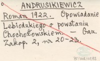ANDRUSIKIEWICZ Roman 1922 Opowiadanie Lebiodzkiego o powstaniu Chocho³owskiem.