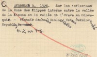 ANDRUSOV D. 1926 Sur les inflexions de la Zone des Klippes interne entre la vallée de la Kisuca et la vallée de l'Orava en Slovaquie.